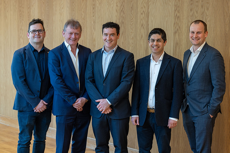 The LaNua Medical team: Denis Nolan, CTO; Tom Fitzmaurice, CEO; Dr Cormac Farrelly, CMO; Dr Sajjad Amiri, co-founder; and Dr Eoin O'Cearbhail, co-founder Credit - Paul Sharp/Sharppix